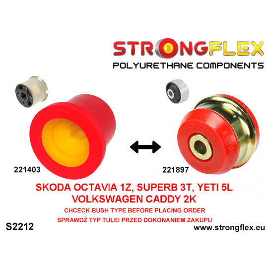 Před nákupem zkontrolujte, který silentblok je ve vašem modelu. - **Platí pro: ŠKODA OCTAVIA II 1Z, SUPERB II 3T, ŠKODA YETI 5L, VOLKSWAGEN CADDY III 2K
