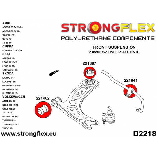 221897B: Strongflex Silentblok předního spodního ramene - zadní 65mm