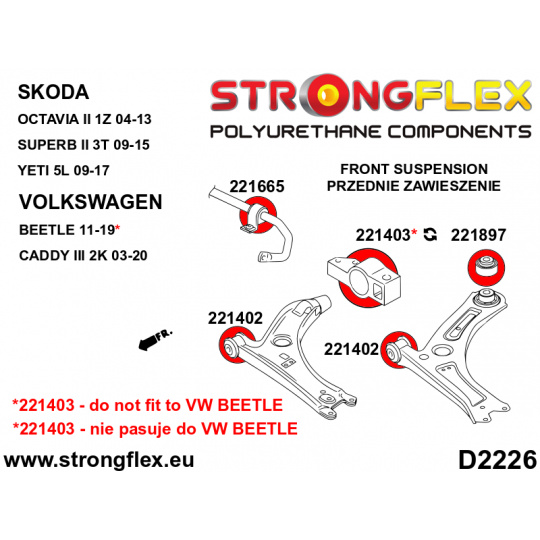 Před nákupem zkontrolujte, který silentblok je ve vašem modelu. - **Platí pro: ŠKODA OCTAVIA II 1Z, SUPERB II 3T, ŠKODA YETI 5L, VOLKSWAGEN CADDY III 2K