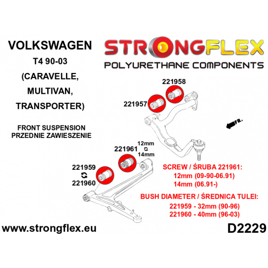 221961B: Strongflex Silentblok předního spodního ramene - zadní 12mm
