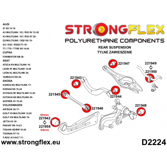 226240A: Strongflex Kompletní sada polyuretanových silentbloků pro zavěšení varianta SPORT