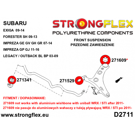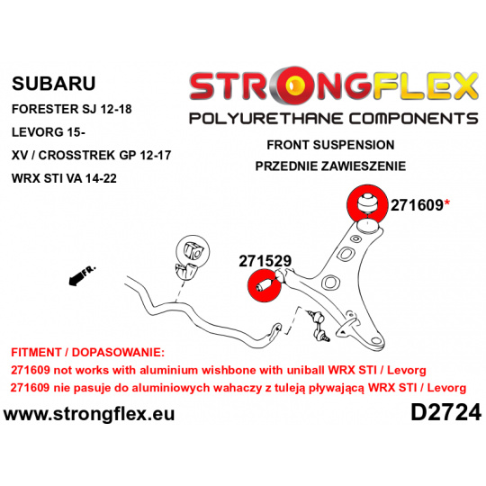 - Silentblok není kompatibilní s hliníkovými rameny s uniball silentblokem Levorg / WRX STI po roce 2011.