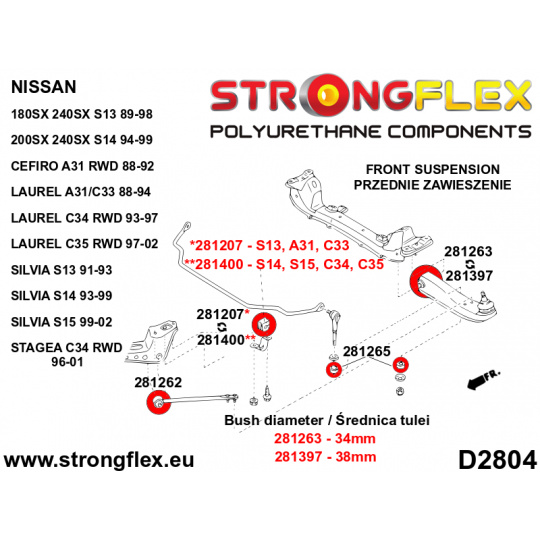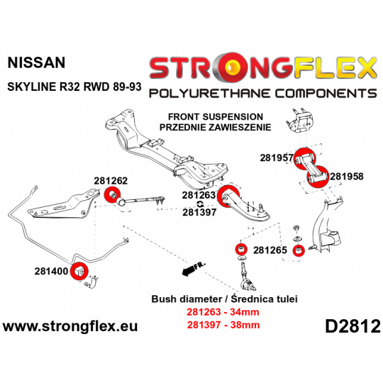 281265A: Strongflex Silentblok tyčky předního stabilizátoru varianta SPORT