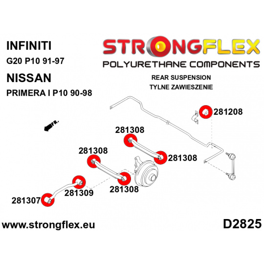 281308A: Strongflex Vnější silentblok ramene k náboji a vnitřní silentblok ramene varianta SPORT