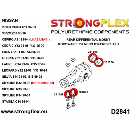286217A: Strongflex Kompletní sada silentbloků pro zavěšení R33 R34 RWD varianta SPORT