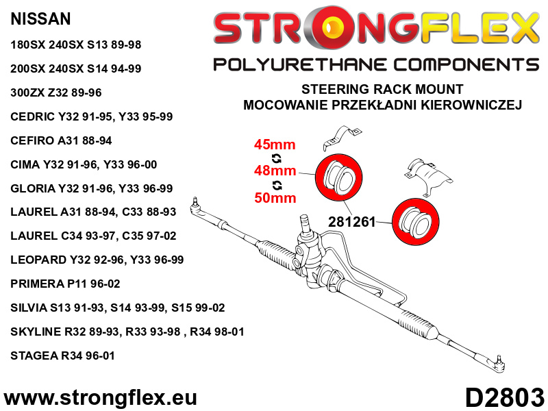 - Vyberte vhodný průměr silentbloku řízení 45mm/48mm/50mm.