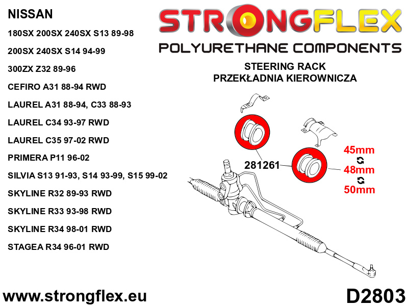 286217A: Strongflex Kompletní sada silentbloků pro zavěšení R33 R34 RWD varianta SPORT