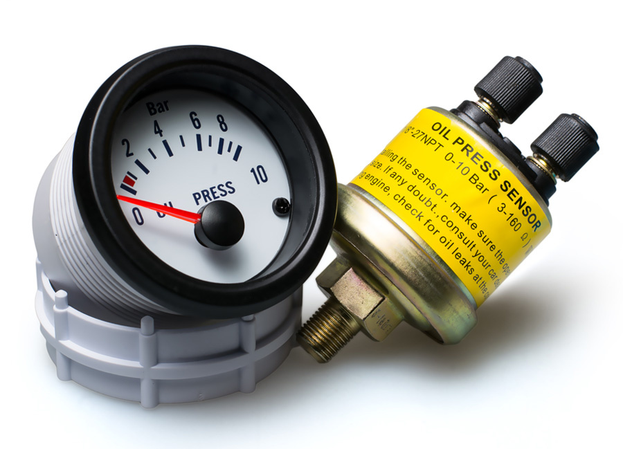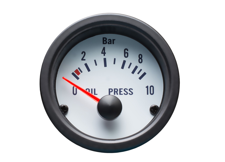 Autogauge palubní přístroj, měřená hodnota: tlak oleje, barva podkladu: bílá