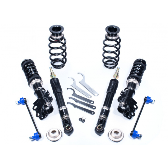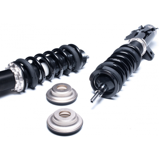 Výška se nastavuje šroubováním celého těla tlumiče, aniž by docházelo ke zkrácení dráhy tlumení nebo změně předpětí pružiny. Rozsah snížení se liší podle typu vozu – od téměř sériové výšky až po extrémní snížení nevhodné pro běžný silniční provoz. - Nastavení tuhosti