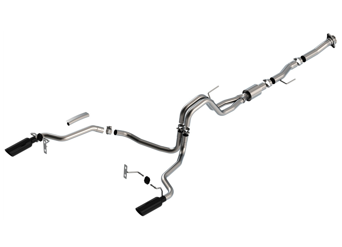 Borla Cat-Back výfukový systém "ATAK" pro Ford F-150 5,0l V8 2-dvéř., s aut. převodovkou, 2WD/4WD, RC/SB (6' 7"), s rozvorem 122,8", r.v. 2021-, typ koncovek: černé