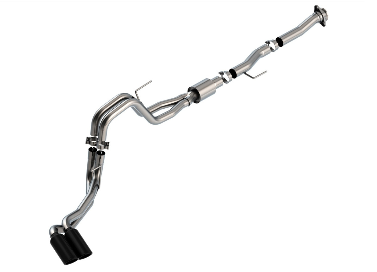 Borla Cat-Back výfukový systém "ATAK" pro Ford F-150 5,0l V8 s aut. převodovkou, 2-dvéř., 2WD/4WD, RC/SB (6' 7") s rozvorem 122,8", r.v. 2021-, typ koncovek: černé