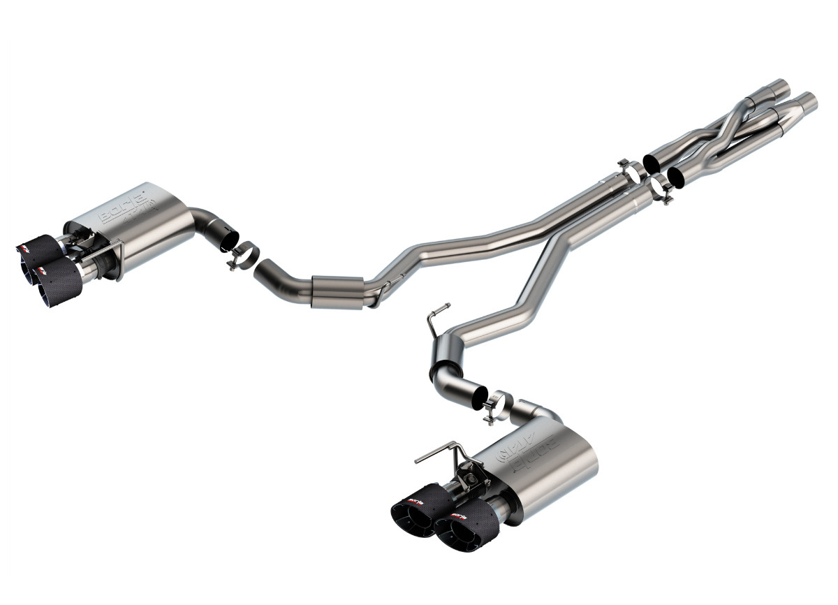 Borla Cat-Back výfukový systém "ATAK" pro Ford Mustang Shelby GT500 5,2l RWD 2-dvéř., r.v. 2020, s "active valve exhaust", typ koncovek: karbonové