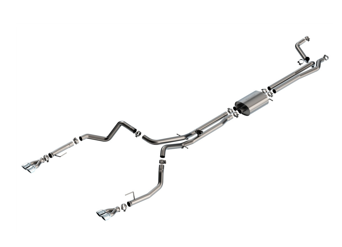 Borla Cat-Back výfukový systém "S-Type" pro GMC Sierra 1500 6.2L V8, automat, 2WD/4WD, EC s SB (6'7") 147.4" WB/ CC s SB (5'10") 147.4" WB, r.v. 2024, pouze pro vozy s továrním rozděleným zadním výfukem