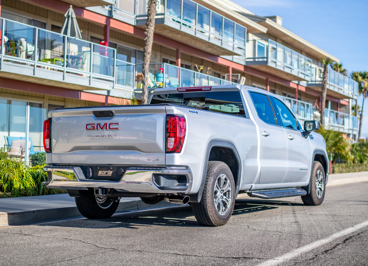 Borla Cat-Back výfukový systém "S-Type" typ 36 pro GMC Sierra 1500 2,7l 4vál. turbo AUT, 2&4WD, Ext. Cab Standard Bed, Crew Cab Short Bed WB 147", r.v. 2019-2020, typ koncovek: černé