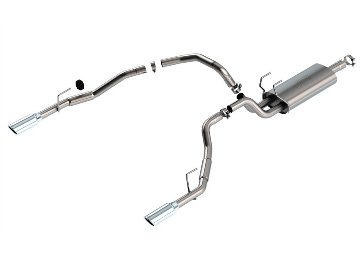 Borla Cat-Back výfukový systém "S-Type" vedený pod zadním nárazníkem, typ 36 pro Ram 1500 5,7l V8 s automatickou převodovkou, RC/EC SB 76,3", CC/SHB 67,4", r.v. od 09-18, typ koncovek: chromové