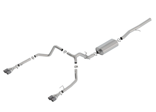 Borla Cat-Back výfukový systém "Touring" pro Chevrolet Silverado 1500 6,2l V8, s aut. převodovkou, 2WD/AWD, EC/SB, CC/SHB, 147", r.v. 2019-2020, typ koncovek: karbonové
