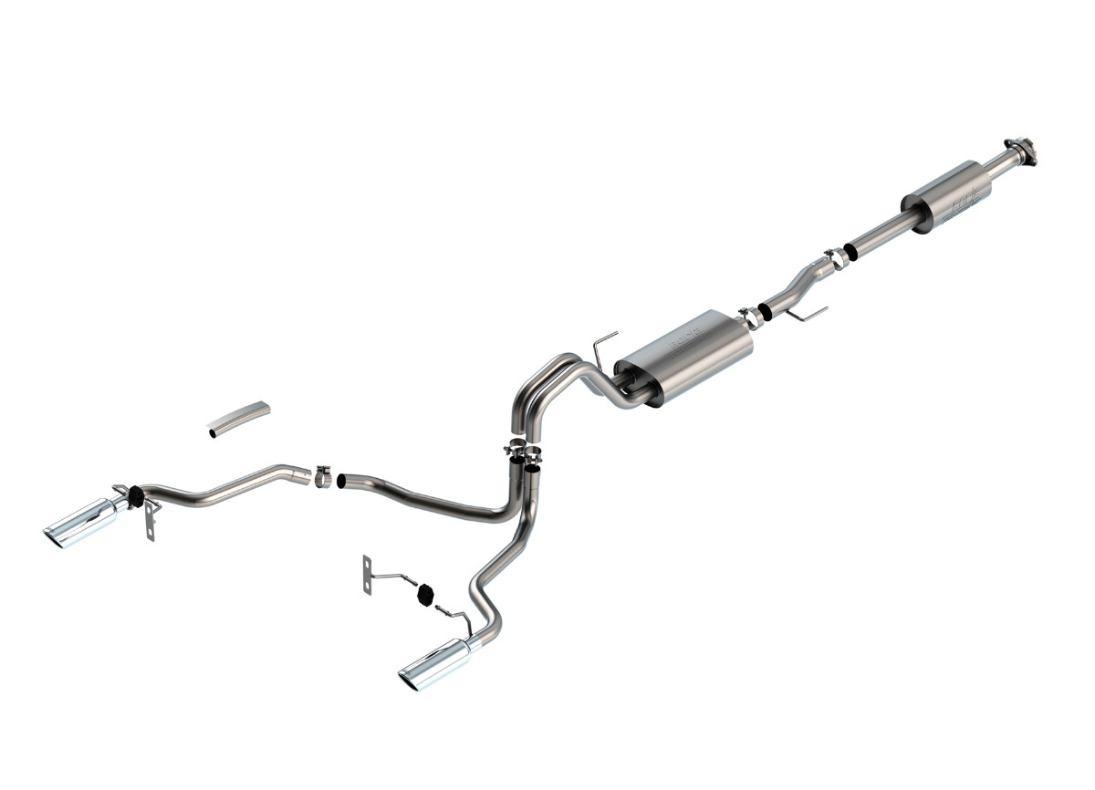 Borla Cat-Back výfukový systém "Touring" pro Ford F-150 2,7l/3,5l V6 4-dvéř., s aut. převodovkou, 2WD/4WD, CC/SHB (5' 7"), EC/SB (6' 7") s rozvorem 145,4", r.v. 2021-, typ koncovek: chromové