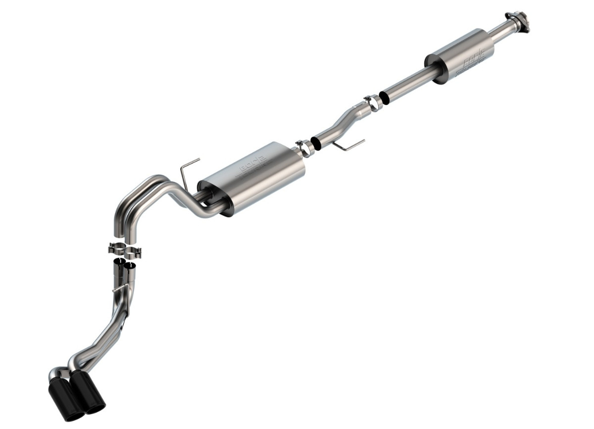 Borla Cat-Back výfukový systém "Touring" pro Ford F-150 2,7l/3,5l V6 s aut. převodovkou, 4-dvéř., 2WD/4WD, CC/SHB (5' 7"), EC/SB (6' 7") s rozvorem 145,4", r.v. 2021-, typ koncovek: černé