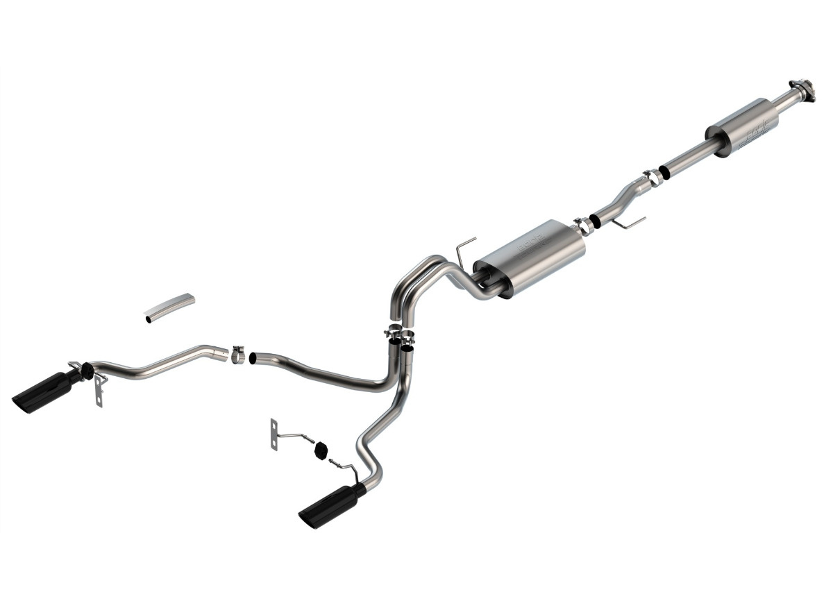 Borla Cat-Back výfukový systém "Touring" pro Ford F-150 5.0 V8 4-dvéř., s aut. převodovkou, 2WD/4WD, CC/SHB (5' 7"), EC/SB (6' 7") s rozvorem 145,4", r.v. 2021-, typ koncovek: černé