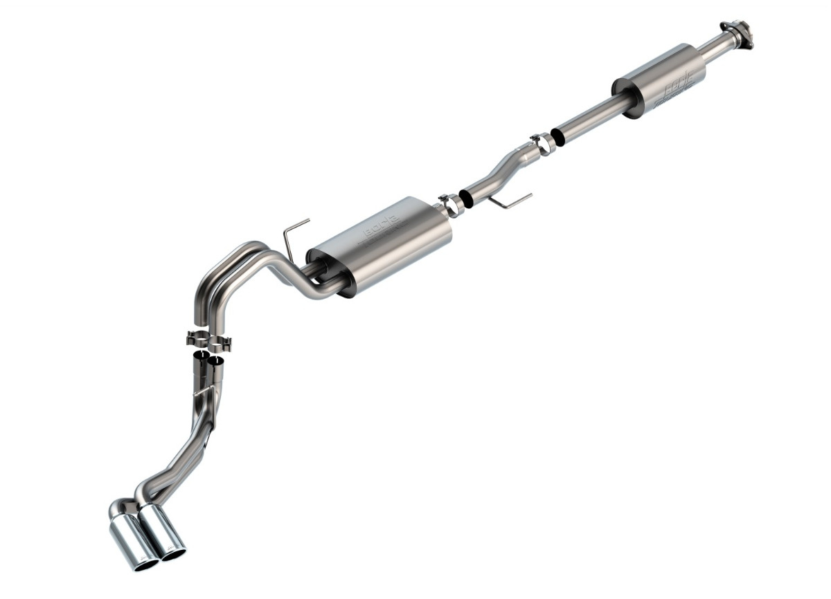 Borla Cat-Back výfukový systém "Touring" pro Ford F-150 5,0l V8 s aut. převodovkou, 4-dvéř., 2WD/4WD, CC/SHB (5' 7"), EC/SB (6' 7") s rozvorem 145,4", r.v. 2021-, typ koncovek: chromové