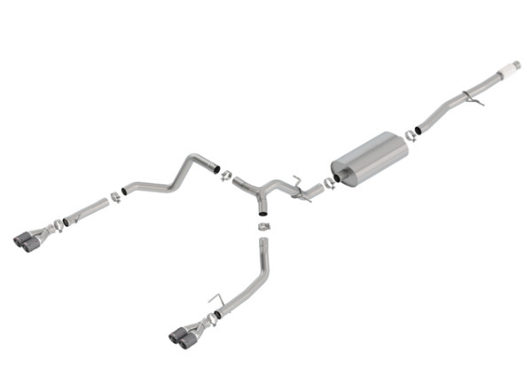 Borla Cat-Back výfukový systém "Touring" pro GMC Sierra 1500 5,3l V8, s aut. převodovkou, EC/SB 78,8", CC/SHB 69,3", r.v. 2019-2020, typ koncovek: karbonové