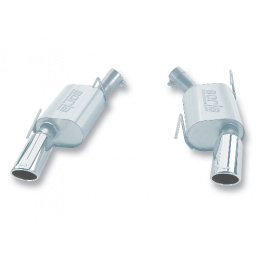 Provedení Borla Touring nabízí nejnižší úroveň hlučnosti v nabídce značky Borla.Oválný tvar tlumičů poskytuje větší kapacitu pro tlumicí náplň, díky čemuž je zvuk tišší než u ostatních modelů Borla.Konstrukce tlumiče zároveň umožňuje vyšší průchodnost a nárůst výkonu při hlučnosti jen mírně převyšující sériový výfuk.