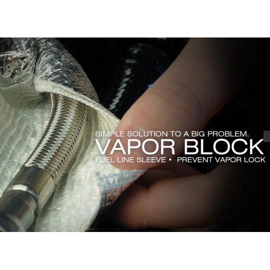 Vapor Block™ je izolační objímka navržená speciálně pro použití na palivových hadicích k izolaci palivových výparů uvnitř izolace a zabránění jejich kontaktu se zdrojem tepla. Tepelně izolační vlastnosti jsou zajištěny skelným vláknem a polyesterem laminovaným na aluminiové fólii. Díky montáži pomocí suchého zipu stačí požadovaný díl jednoduše obtočit objímkou a zajistit na suchý zip.
