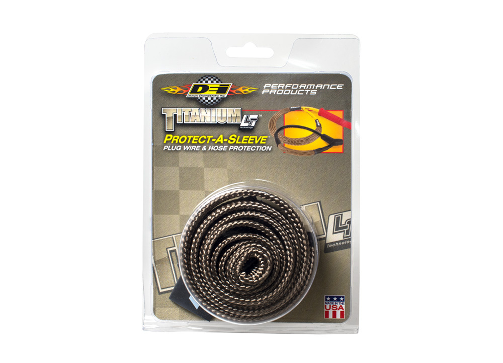 Nový titanový termo izolační návlek DEi Design Engineering "Titanium Protect-A-Sleeve" nabízí nejlepší aktuálně dostupnou ochranu pro kabeláž vašeho vozu. Všude tam, kde hrozí poškození kabeláže vlivem extrémního tepla dokáží tyto titanové návleky odolávat kontaktnímu teplu až do 980°C a sálavému teplu dokonce až do 1370°C. Balení obsahuje termo izolační návlek o vnitřním průměru cca 1,3 cm a délce 1,2 m.