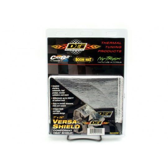 DEi Design Engineering Versa Shield je univerzální termoizolační obal vhodný například pro izolaci startérů, brzdových válců, palivových pump a dalších dílů. Jádro ze skelné tkaniny potažené aluminiovou reflektivní vrstvou dokáže odolávat sálavému teplu až do 1100°C. Balení obsahuje termoizolační obal o rozměru 17,7 cm x 61 cm.