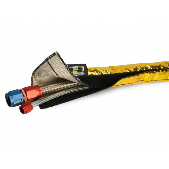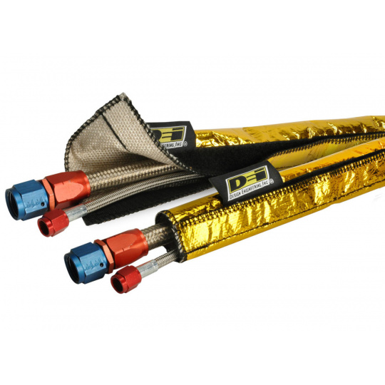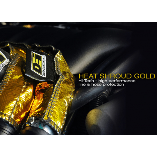 Tepelně izolační objímka DEi Design Engineering Heat Shroud Gold je díky odolnosti proti sálavému teplu do 593°C a kontaktnímu teplu do 426°C ideální jako tepelná izolace hadic, trubek a kabeláže v motorovém prostoru. Díky montáži pomocí suchého zipu stačí požadovaný díl jednoduše obtočit objímkou a zajistit na suchý zip.