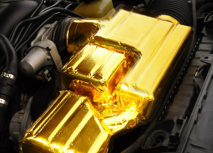 Samolepicí tepelně izolační zlatý plát DEi Design Engineering Reflect-A-GOLD je zlatě metalizovaná tkanina na bázi skelných vláken vhodná pro použití v extrémních podmínkách. Je extrémně lehká a snadná pro aplikaci. Hodí se ideálně na zakrytí požárních příček, boxů vzduchového filtru, krytů motoru a dalších částí. Balení obsahuje zlatý plát o rozměru 61 x 61 cm, který je možné jednoduše upravit na požadovaný rozměr pomocí nože nebo nůžek