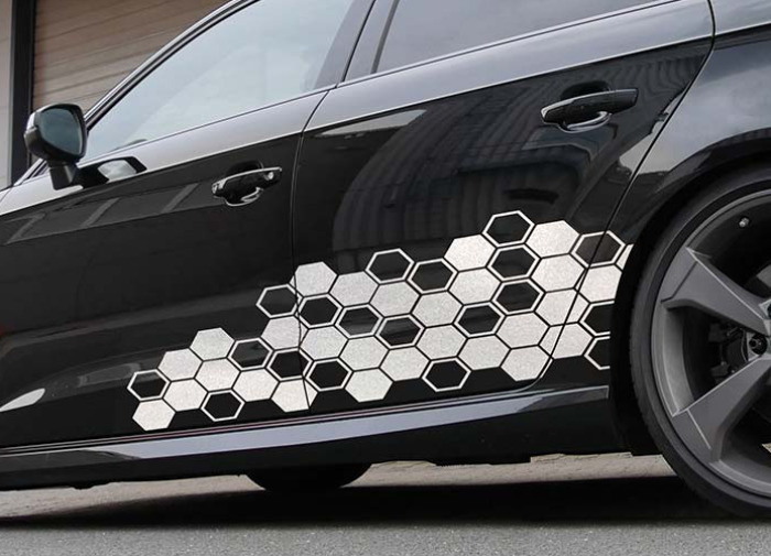 Designový polep FOLIATEC – motiv HEXAGON dodá vašemu vozu moderní a technický vzhled. Samolepky jsou vyrobeny z vysoce odolné exteriérové fólie, snadno se instalují a vydrží i náročné podmínky.
