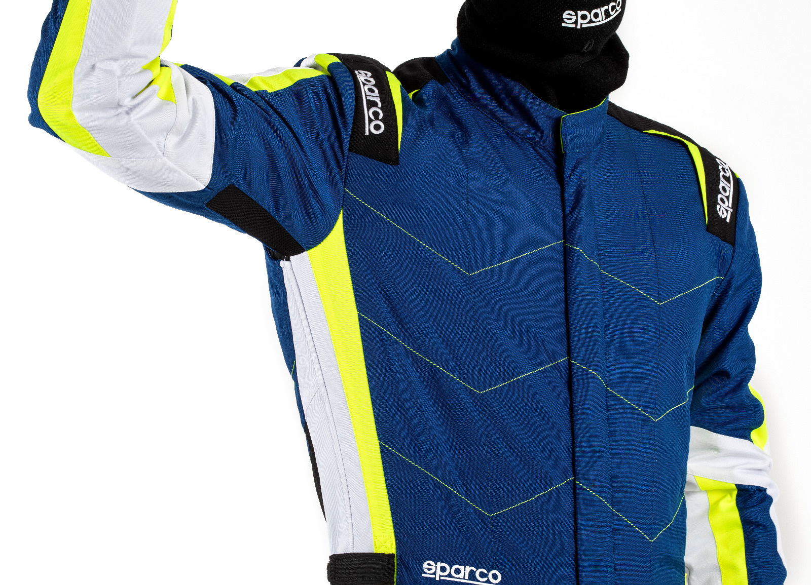 Dětská kartingová kombinéza Sparco KERB, s homologací FIA, barva: modro-žlutá, velikost: 130