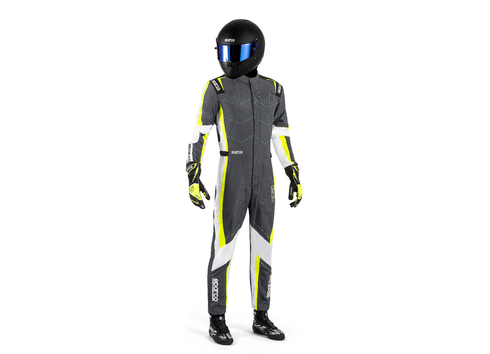 Dětská kartingová kombinéza Sparco KERB, s homologací FIA, barva: šedo-žlutá, velikost: 150