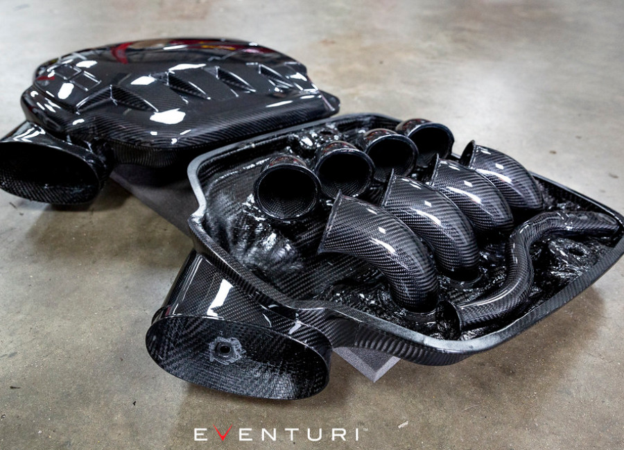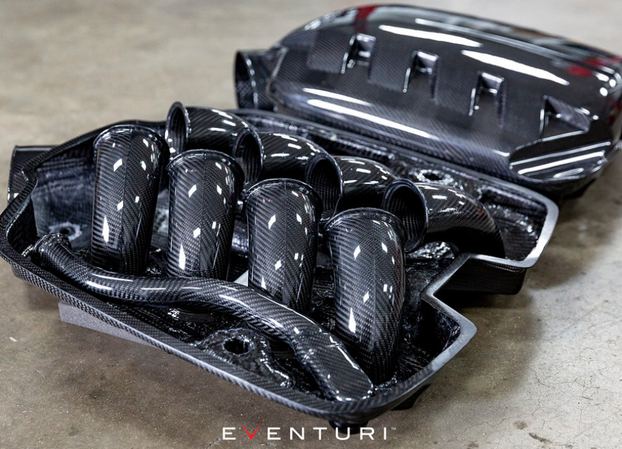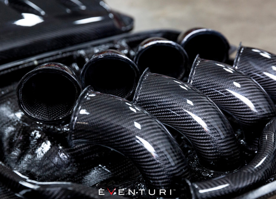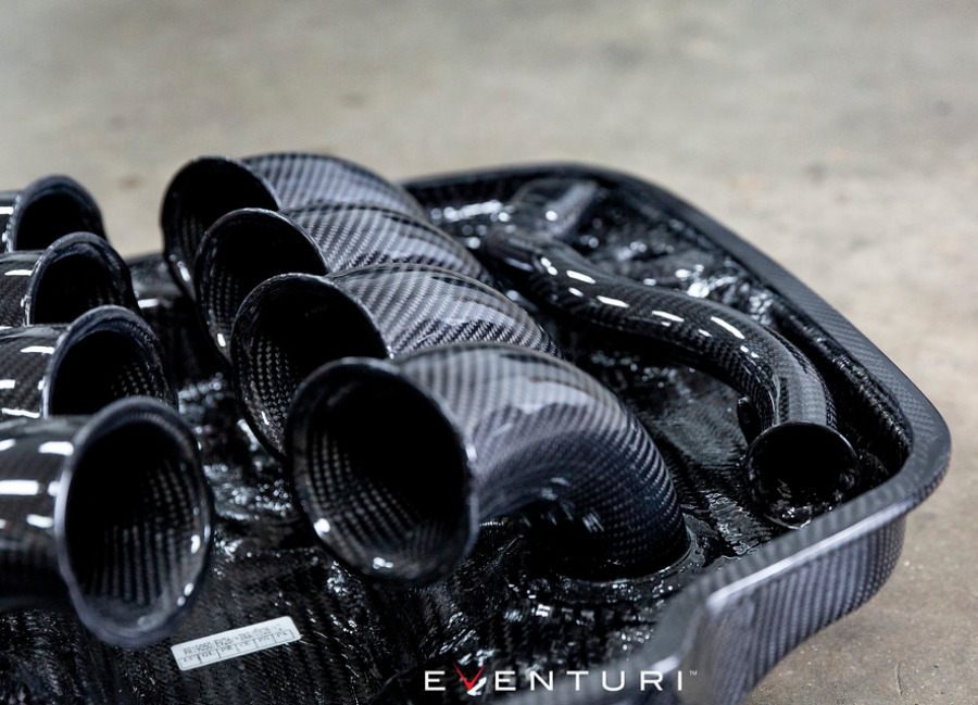Karbonové sací plenum svody Eventuri jsou vyrobeny kompletně ze 100% prepreg karbonu a skládají se z řady komponentů se specifickým využitím právě u této platformy:
