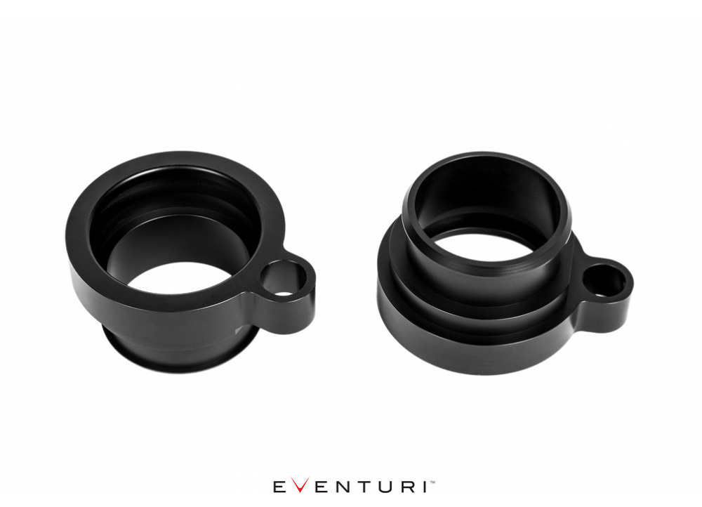 Napojení karbonových chargepipes k turbodmychadlům je v případě Eventuri řešeno pomocí CNC frézovaných přírub využívajících OEM těsnění, které zajišťuje potřebnou těsnost. Každá příruba je frézována z leteckého hliníku a eloxována do černé barvy. Spojení mezi přírubami a karbonovými chargepipes je pak zajištěno vysoce kvalitními silikonovými spojkami a sponami z nerezové oceli.