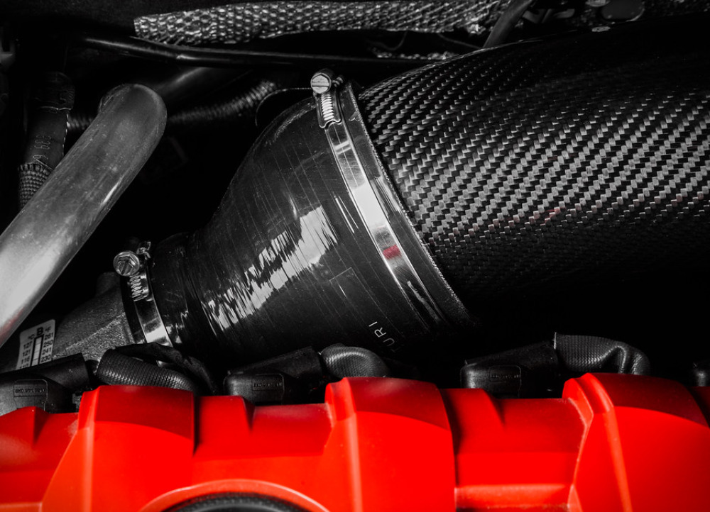 Trubice pro vedení vzduchu od filtru k turbodmychadlu je vyrobena ze 100% prepreg karbonu se zcela hladkým vnitřním povrchem. Vnitřní průměr této trubice je u sání Eventuri celých 103 mm a bez jakýchkoliv restrikcí a ztráty tlaku vede vzduch od filtru do turbodmychadla.