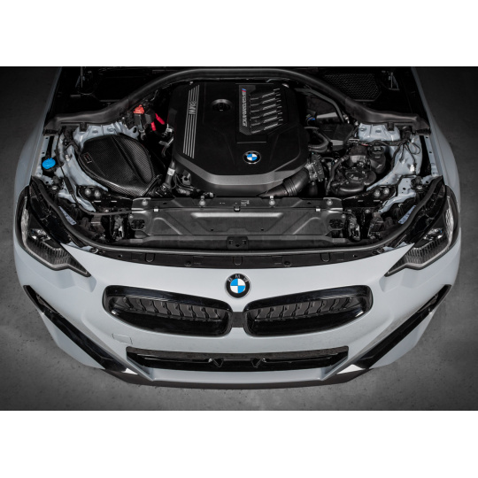 Eventuri kit sání pro BMW řady 3 G20 s motorem B58 je dalším z kompletních systémů vedení nasávaného vzduchu do motoru. Jedná se o kompletně uzavřený kit sání, který zajišťuje, že turbodmychadlo nenasává horký vzduch z motorového prostoru. Celé sání je navrženo tak, aby přivádělo vzduch do motoru co možná nejméně restriktivní cestou. Protože je sání umístěno továrně v blízkosti výfukových svodů, je pro jeho funkci zcela zásadní přívod čerstvého vzduchu, který spolu s airboxem z prepreg karbonu udržuje teplotu nasávaného vzduchu na minimální možné úrovni. Kromě továrního přívodu vzduchu využívá Eventuri další zdroj v podobě otvoru v podběhu kola. Proti výfukovým svodům pak míří i tepelný štít se zlatou reflektivní tepelnou izolací.