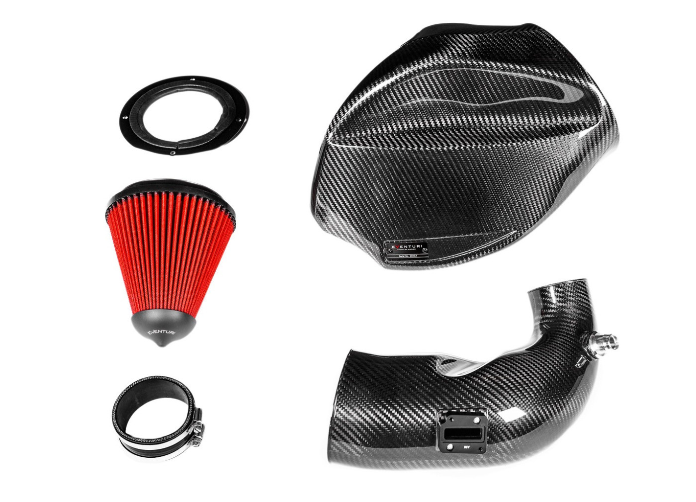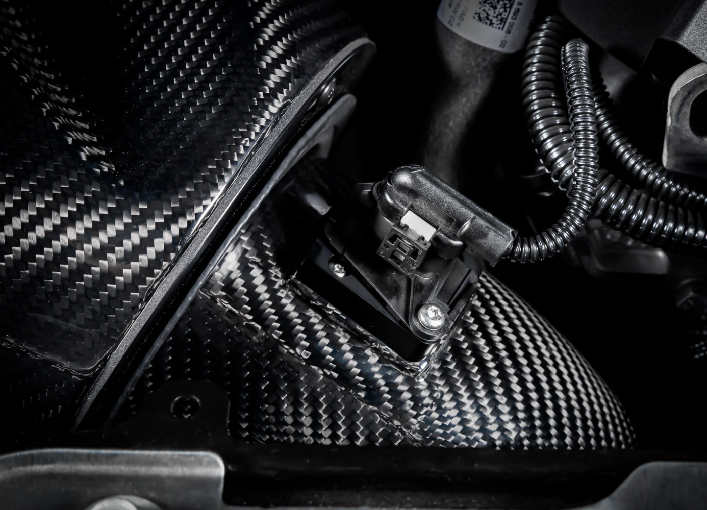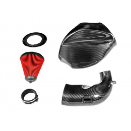 Uzavřený airbox je vyrobený ze 100% prepreg karbonu a slouží dvěma hlavním účelům - odstínit filtr od zdroje tepla v motorovém prostoru a zajistit přísun čerstvého vzduchu díky dvojitému vstupu. Protože je airbox umístěn v těsné blízkosti výfukových svodů a jeho objem je maximalizován s ohledem na prostor pod kapotou, je zcela zásadní, aby byl airbox uzavřený. Utěsnění v místě sací trubice zajišťuje laserem řezaná příčka s gumovým těsněním. Sací trubka vede skrz tuto příčku a gumové těsnění zajišťuje, že horký vzduch nebude pronikat do airboxu.
