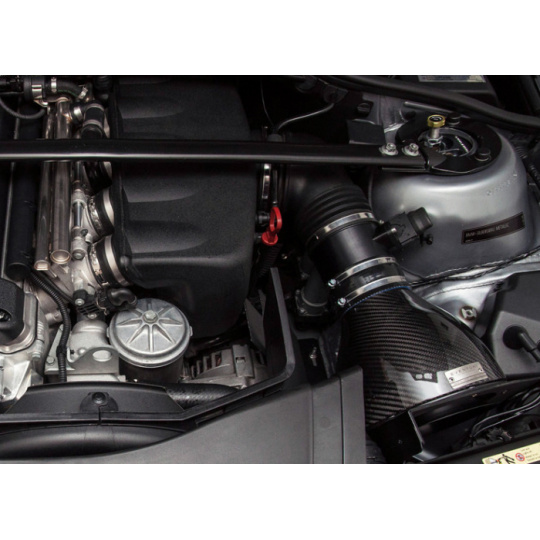 Pouzdro filtru je vyroben z kravého carbonu nejvyšší kvality. Samotný filtr je hluboký skládaný, s vysokou průtokovou konfigurací s dvojitým kónusem, který je suchý, aby nedošlo k poškození snímače MAF. Nakonec je sestava spojena hliníkovým tepelným štítem, který účinně zakrývá sání z tepla motoru a zachycuje okolní vzduch, který je odkloněn od lopatky.