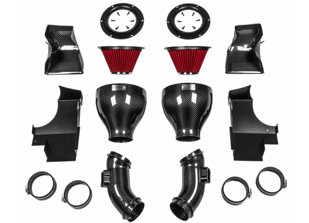Nasávací trubice jsou vyrobeny z pravého karbonu. Každá trubka má integrovaný držák senzoru MAF.