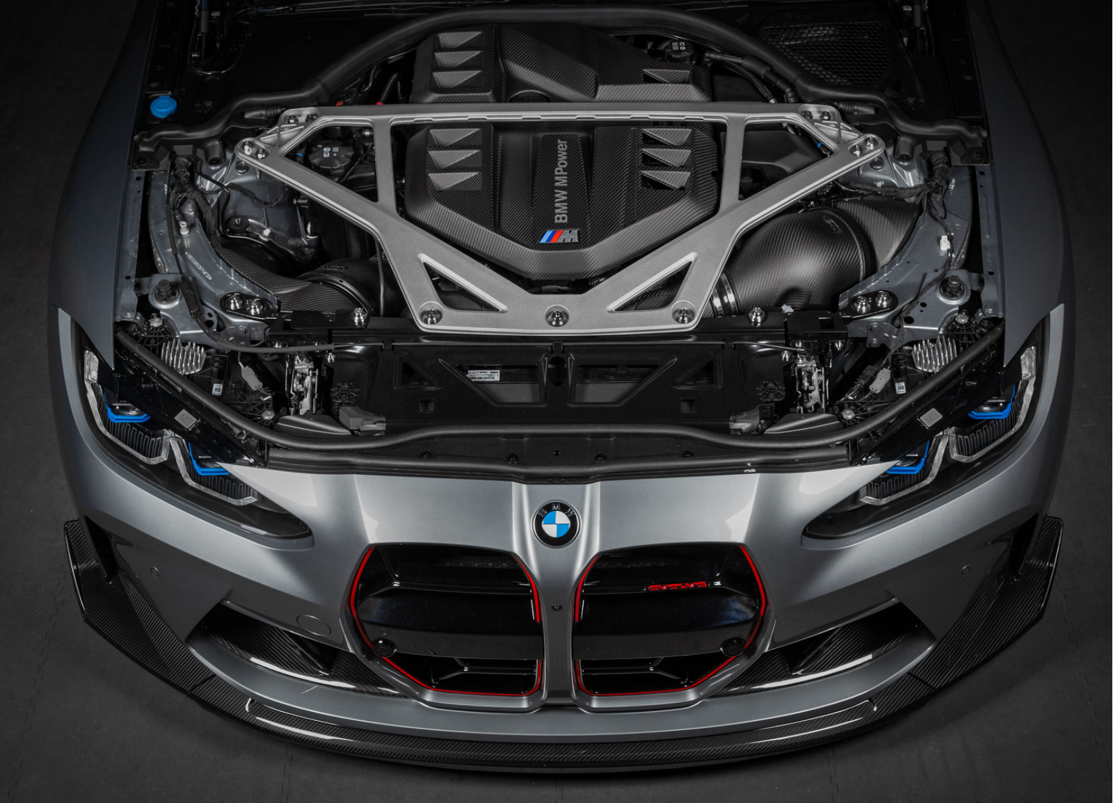 Systém přímého sání Eventuri pro BMW G80 M3 CS / BMW G82 M4 CSL obsahuje řadu komponentů, které byly vyvinuty pro tento konkrétní model vozu a vyrobeny s maximální pečlivostí tak, aby sada dosahovala nejvyšších standardů. Sání je zároveň přizpůsobeno pro použití v kombinaci s rozměrnou rozpěrou CS/CSL.