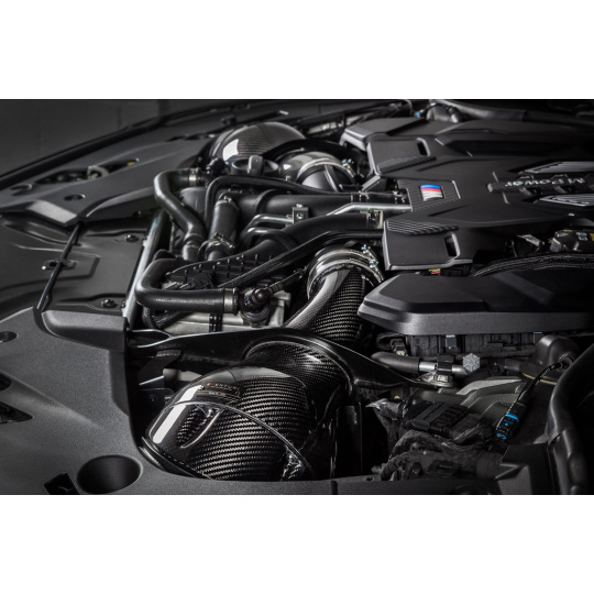 Kit sání Eventuri pro BMW M5 F90 je výsledkem náročného vývoje, testování a simulací, které předcházely finální produkt. Představuje perfektní rovnováhu mezi dosažením nerestriktivního vedení vzduchu za použití polootevřených airboxů a snahy o dosažení co nejnižší teploty nasávaného vzduchu. Tomu napomáhá dodatečný tepelný štít stínicí pomocí zlaté izolace teplo, které by mohlo pronikat z motorového prostoru a soustava difuzorů pro dostatečný přísun čerstvého vzduchu.