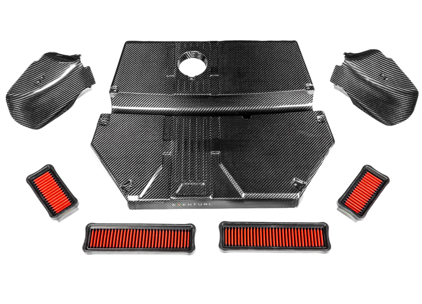 Kryt motoru Eventuri je vyroben ze 100% prepreg karbonu a svými rozměry přesně kopíruje tovární díl. Nad krytem motoru není v motorovém prostoru dostatek místa pro jeho zvětšení. Navíc by taková úprava narušila přímé vedení vzduchu do motoru. Díky své konstrukci z karbonu je ale nový kryt tenčí a lehčí a dává tak vyniknout zvukovému projevu vozu.