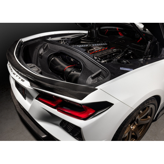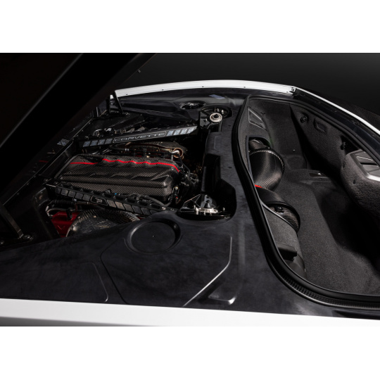 Také sání pro Corvette C8 využívá hned dvojici airboxů s patentovaným tvarem a obráceně umístěnými vzduchovými filtry. Vzduch tak proudí sáním bez prudkých nežádoucích restrikcí a díky uzavřené konstrukci ze 100% karbonu nedochází k pronikání horkého vzduchu do sání.