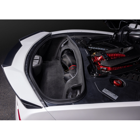 Také sání pro Corvette C8 využívá hned dvojici airboxů s patentovaným tvarem a obráceně umístěnými vzduchovými filtry. Vzduch tak proudí sáním bez prudkých nežádoucích restrikcí a díky uzavřené konstrukci ze 100% karbonu nedochází k pronikání horkého vzduchu do sání.