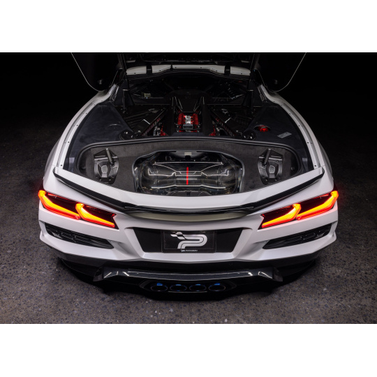 Sání Eventuri nastavuje novou laťku mezi sportovními kity sání pro platformu Chevrolet Corvette C8 kitem, který má největší dostupný objem sání na trhu*. Tvar i velikost továrního sání je limitován krycím panelem mezi motorovým a zavazadlovým prostorem. Eventuri se ale nenechalo omezovat a vytvořilo sání mnohem větší s optimalizovaným vedením vzduchu. Aby to bylo možné, je součástí sady také zcela nový polykarbonátový kryt, který nejen, že poskytl více mista, ale protože je čirý, je díky němu sání po zvednutí kapoty viditelné.