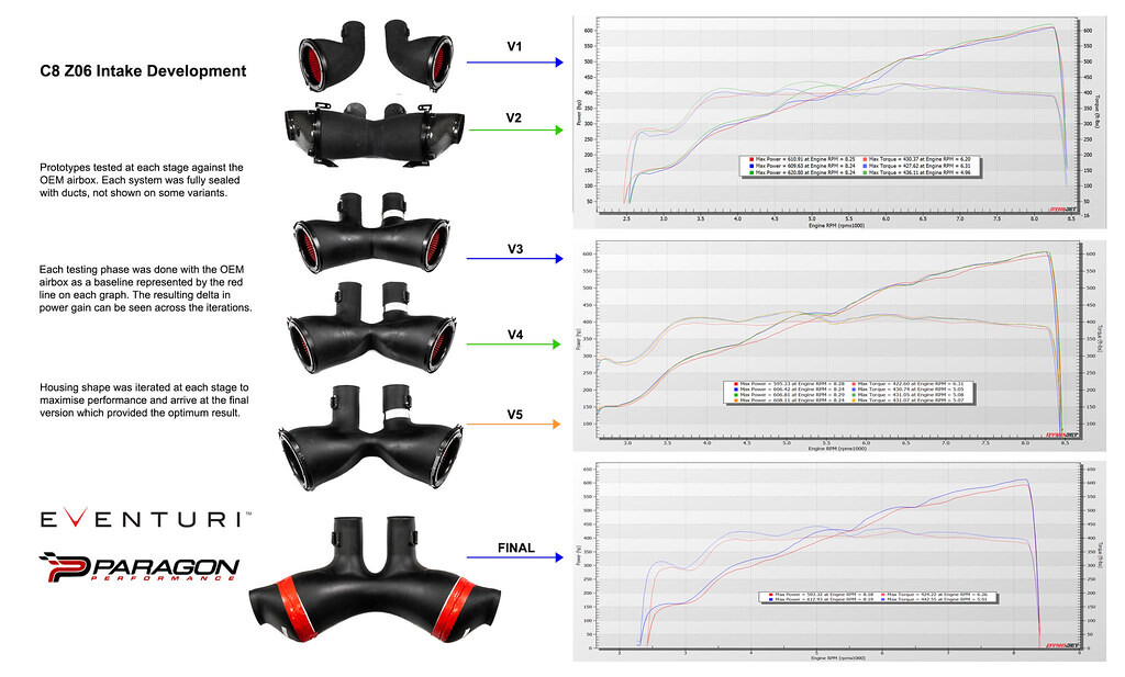 Vývoj probíhal ve spolupráci s americkou firmou Paragon Performance, která je specialistou na vozy Corvette. Níže jsou naznačené další testované varianty airboxů pro Corvette C8 Z06: