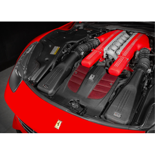 Nově přepracovaná víka airboxů byla navržena pro získání maximálního objemu pro nasávaný vzduch a pro optimalizaci proudění vzduchu od filtru ke škrticí klapce. Instalace je shodná jako u originálního víka díky integrované příruběm což zajišťuje dokonalé spasování a těsnost sání. Jako povrchová vrstva byla také zvolena karbonová tkanina 1x1, aby sání designově souhlasilo s originálními díly Ferrari.