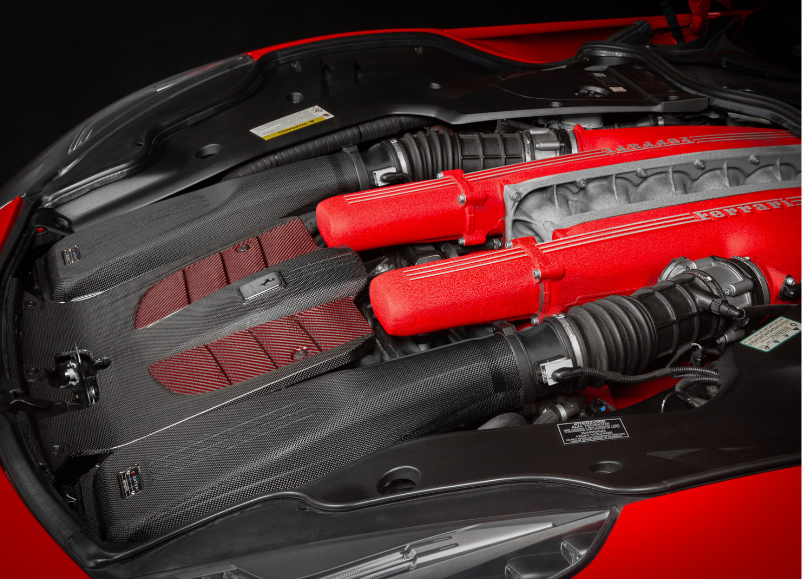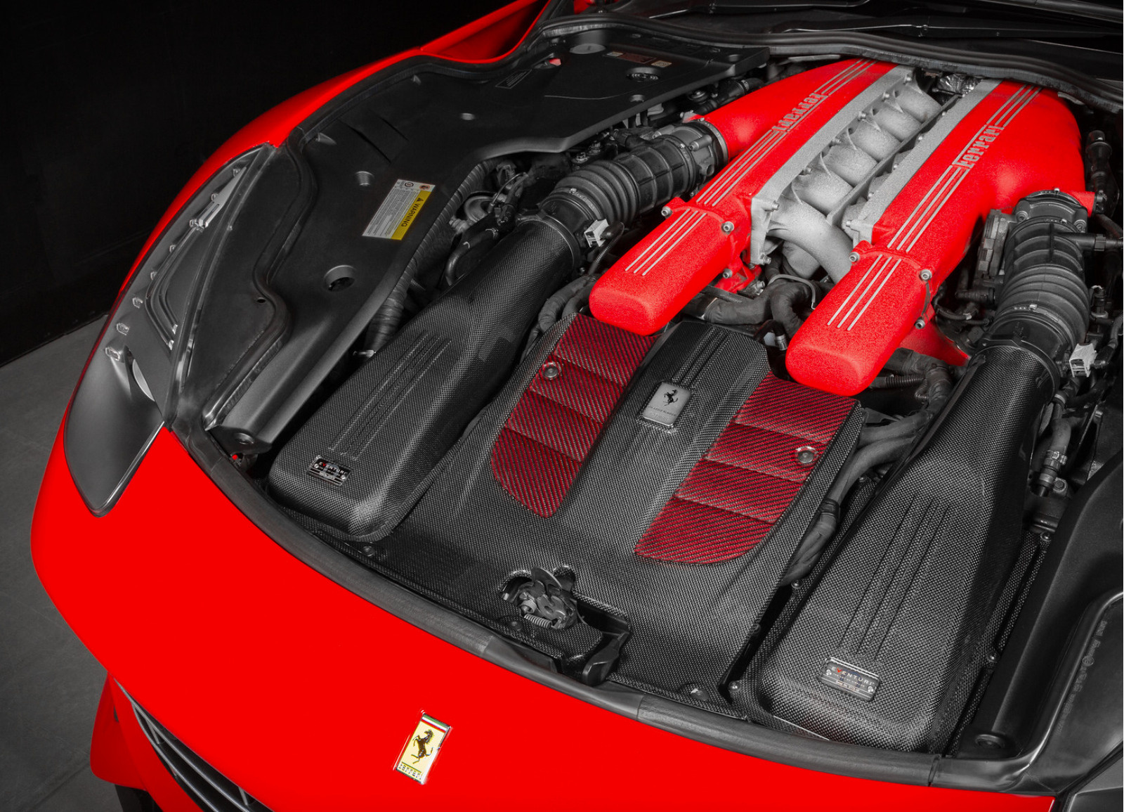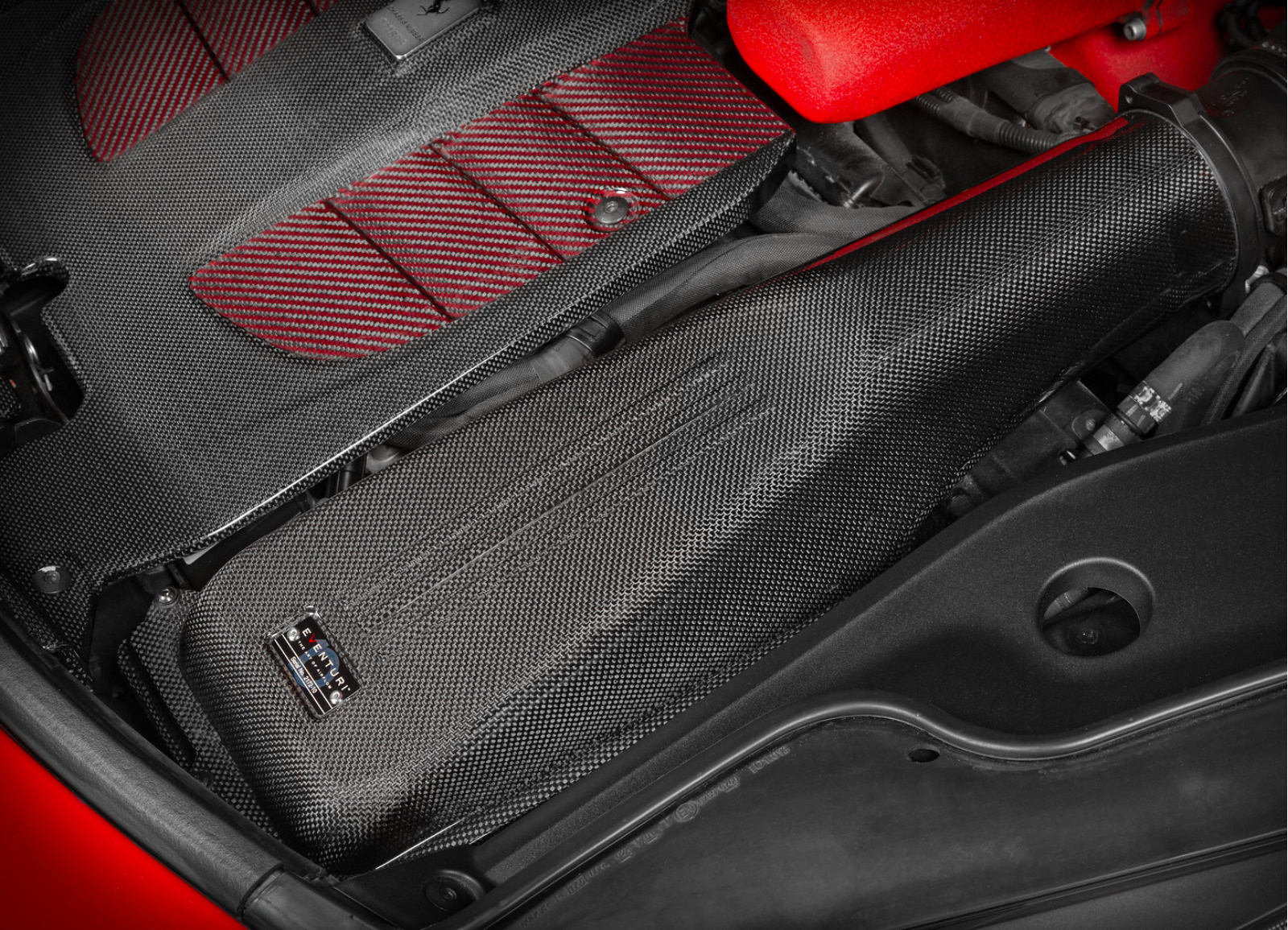 Nově přepracovaná víka airboxů byla navržena pro získání maximálního objemu pro nasávaný vzduch a pro optimalizaci proudění vzduchu od filtru ke škrticí klapce. Instalace je shodná jako u originálního víka díky integrované příruběm což zajišťuje dokonalé spasování a těsnost sání. Jako povrchová vrstva byla také zvolena karbonová tkanina 1x1, aby sání designově souhlasilo s originálními díly Ferrari.